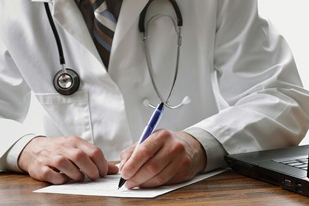 Врач за рабочим столом делает записи